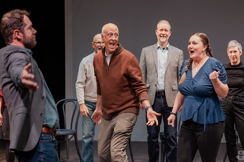 After intermission, Sam, Trevor, and Ellie will be singing dynamic songs accompanied by the incomparable Dale Scrivener on the piano. In true Lickety-Split fashion, there’s a twist: Scott and Karisa won’t know what songs are coming — but they will be using each one to inspire totally improvised comedic scenes between the musical numbers.